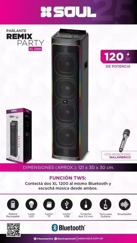 El Soul Remix Party XL 1200 está hecho para potenciar cualquier fiesta. Su diseño imponente, potencia real y variedad de conexiones lo convierten en el aliado ideal para eventos, karaoke o simplemente disfrutar buena música con estilo.